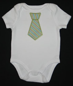 I used the same striped fabric as Dashiell's, but on a white onesie with green stitching it looks different. I think I like this one even better! The beauty is when he outgrows his 0-3month onesie, I can make him a new one like this in the next size! :)